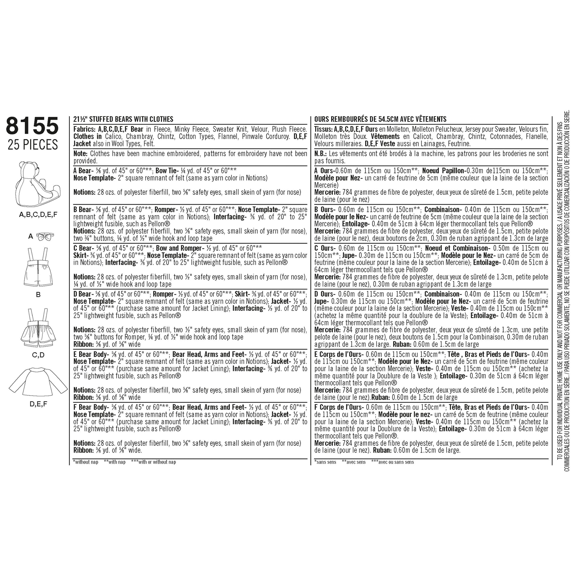Simplicity Pattern 8155 Stuffed Bears with Clothes