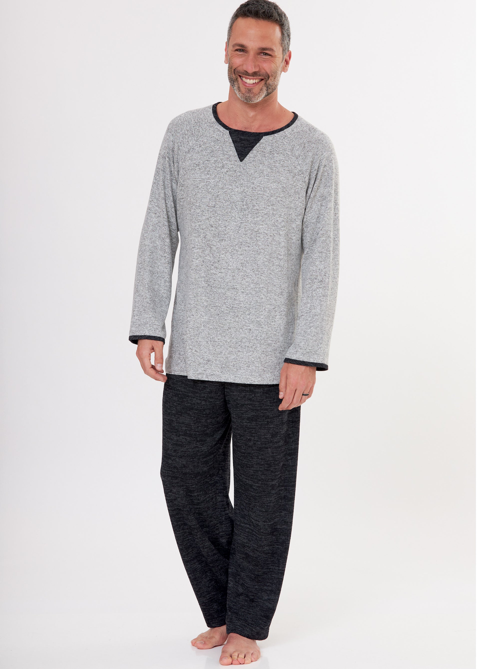 | Pullover top and tunic has contrast neckline and sleeve hem, hem variations and elastic waist pants. |