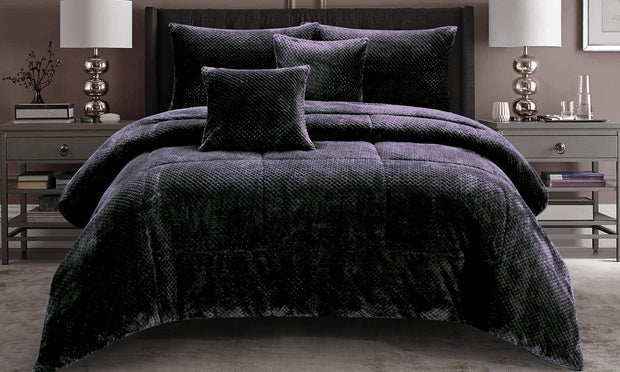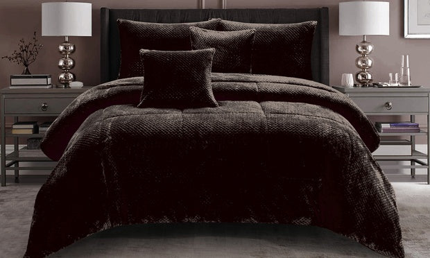 Alaria 3 Piece Waffle Fleece Comforter Set, Burgundy