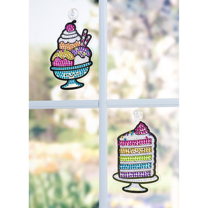 Apply your Big Gem Sweet stickers to journals, cards, notebooks, pencil cases and so much more. Display your suncatchers using the stands or included suction cups.