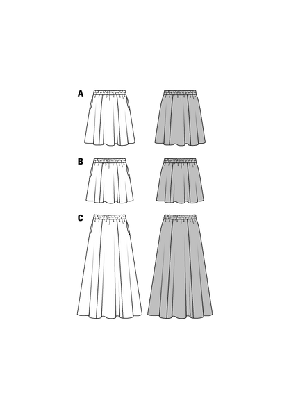 - Skirt - Elastic Waist - From Mini to Maxi. Here is an easy going skirt with no fastening, just elastic at the waist.