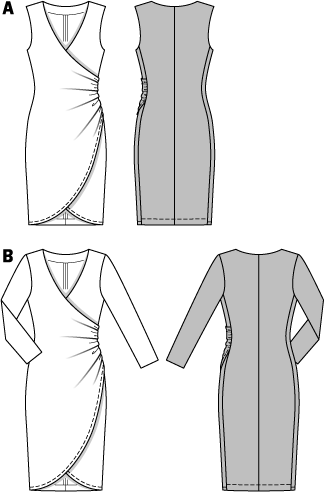 - This tight-fitting dress with gathered sides requires softly draping, stretchy fabrics.
