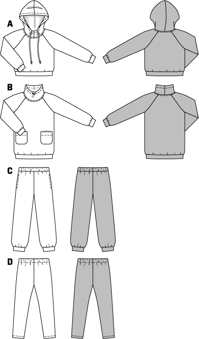 - Casual coordinates for girls and boys. either short hoody with jogging pants or long shirt with leggings.