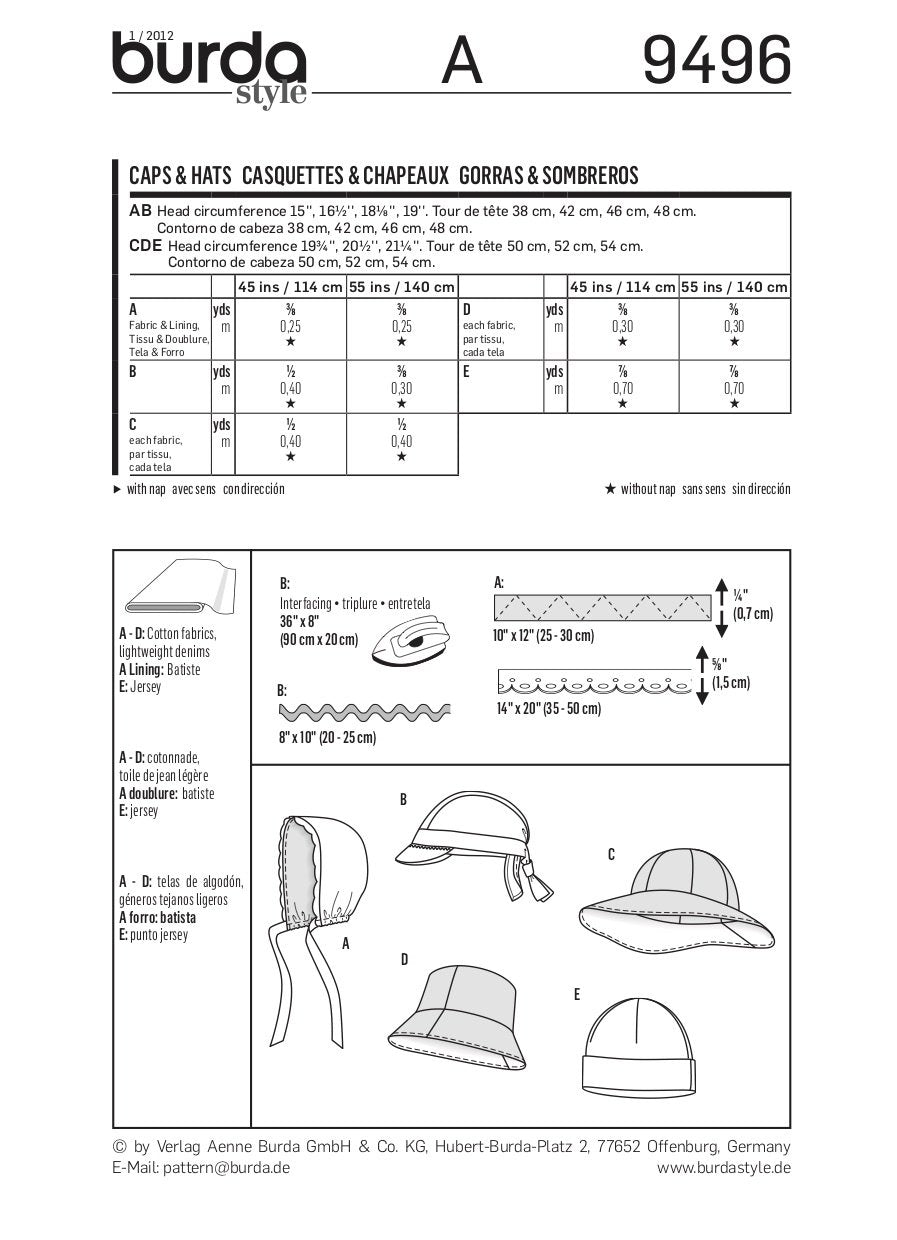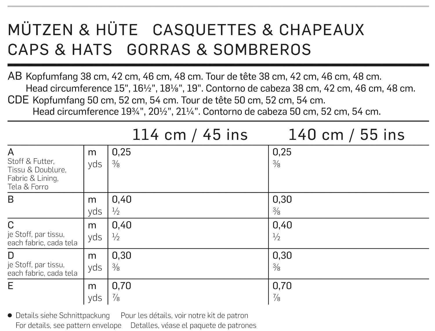 - Quick and easy to sew for colder days or as a shelter from the sun. A,B: 15,16-1/2, 18-1/8, 19". C,D,E: 19-3/4,20-1/2,21-1/4".