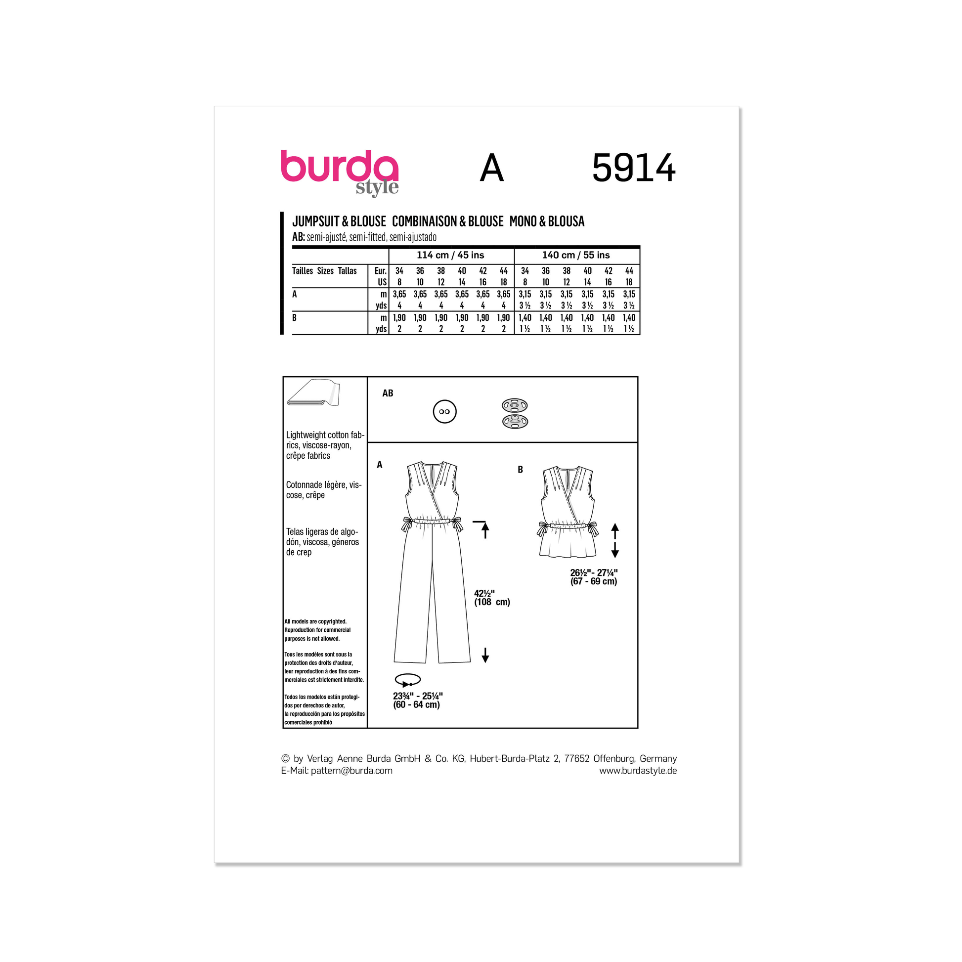 Burda Pattern 5914 Misses' Overalls & Blouse