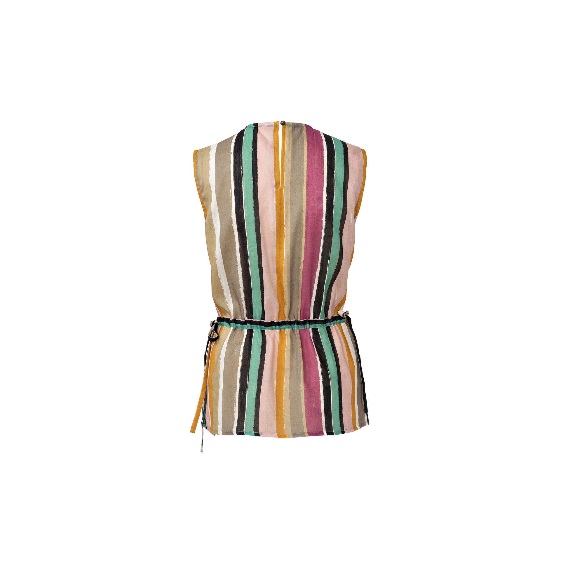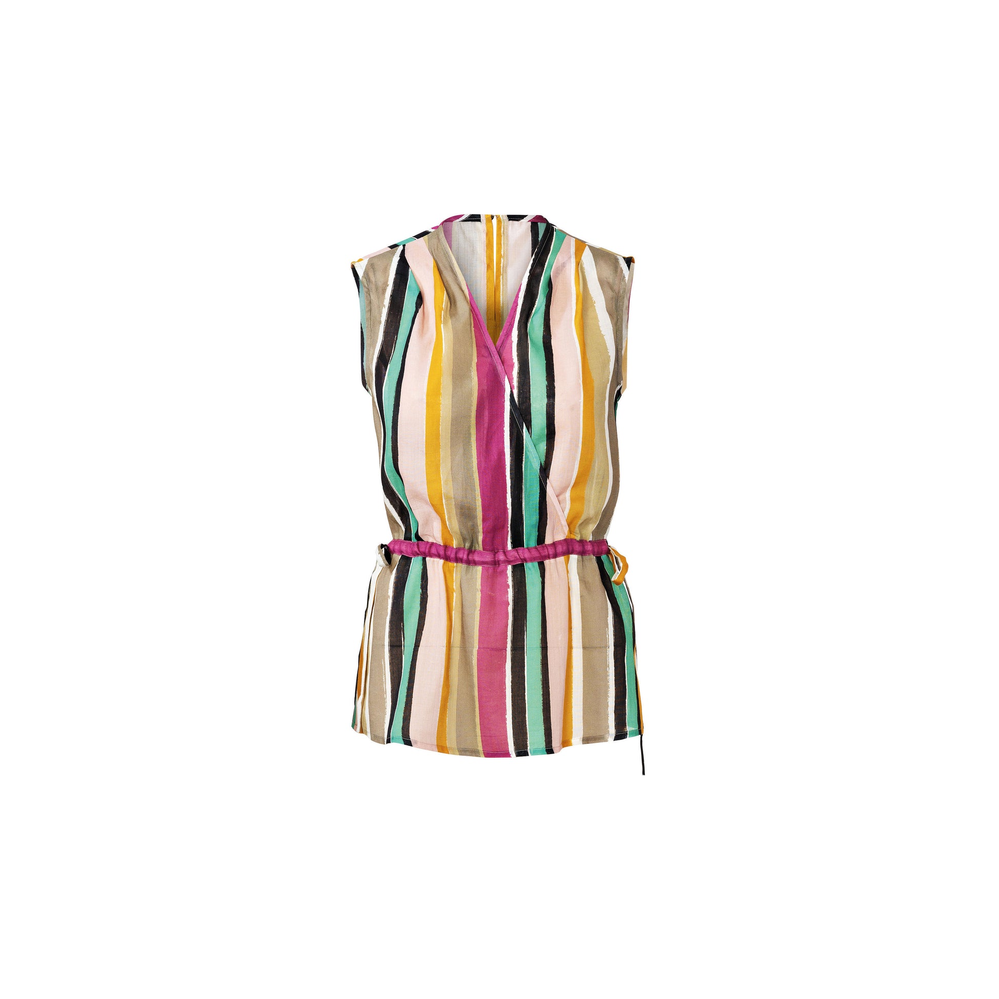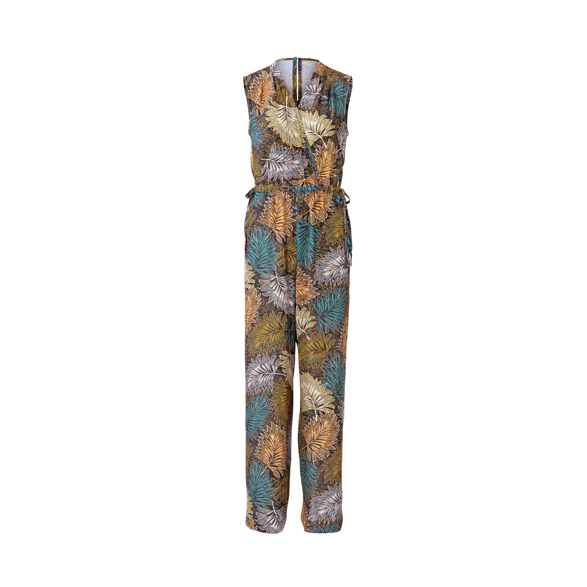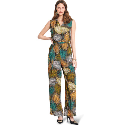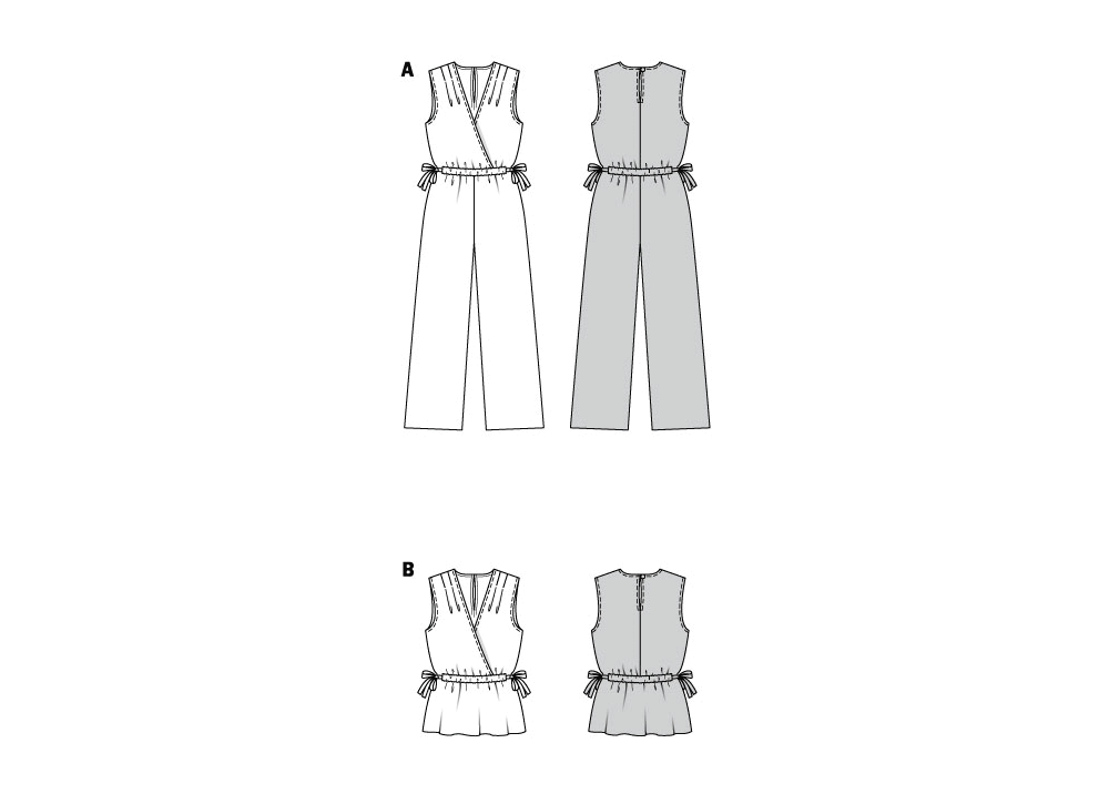 Jumpsuit A is a mock wrap sleeveless top combined with pants. The peplum is an added detail on view B. These are wonderfully lightweight and easy-to-wear garments for summer. Adjust the fit with bands tied to bows at the side.