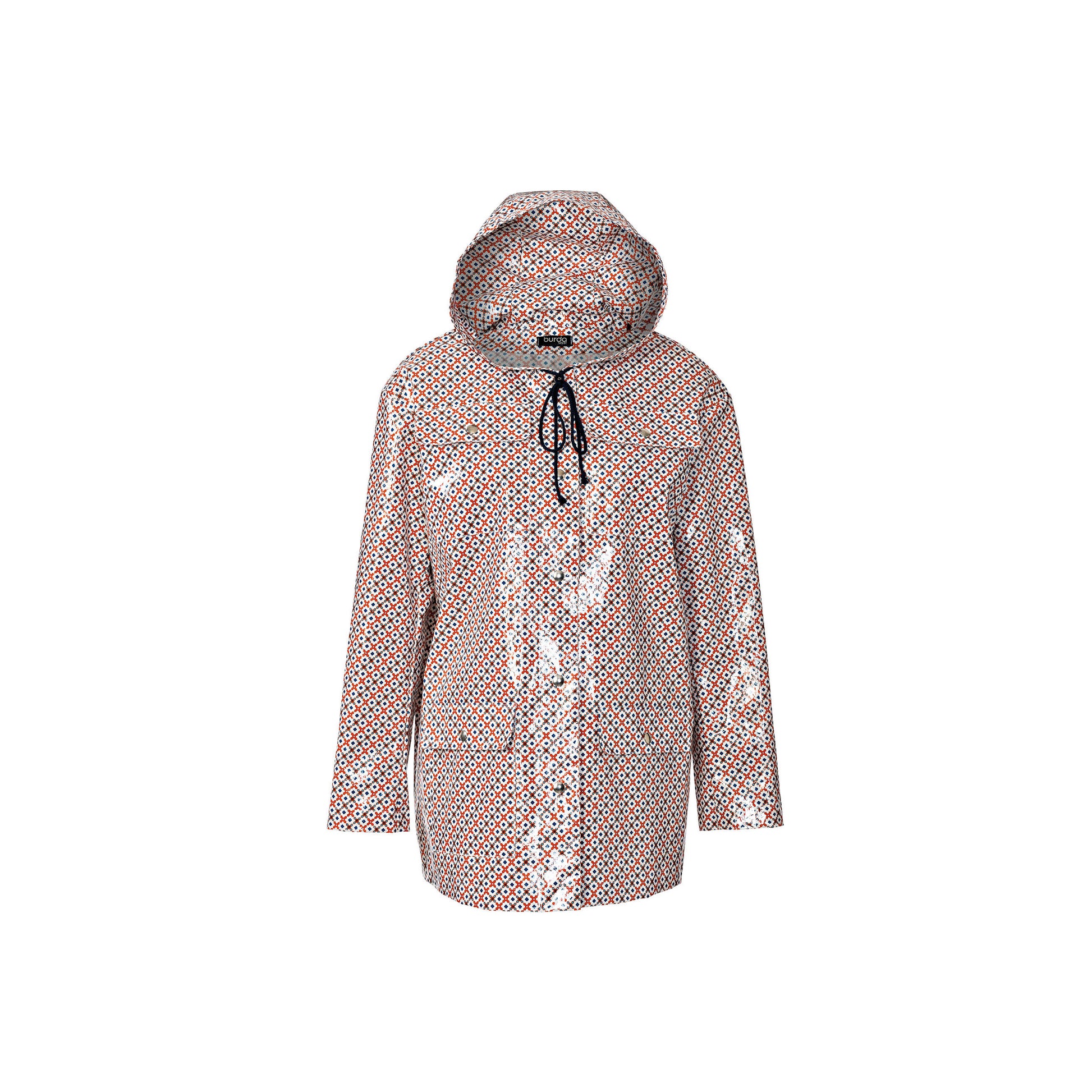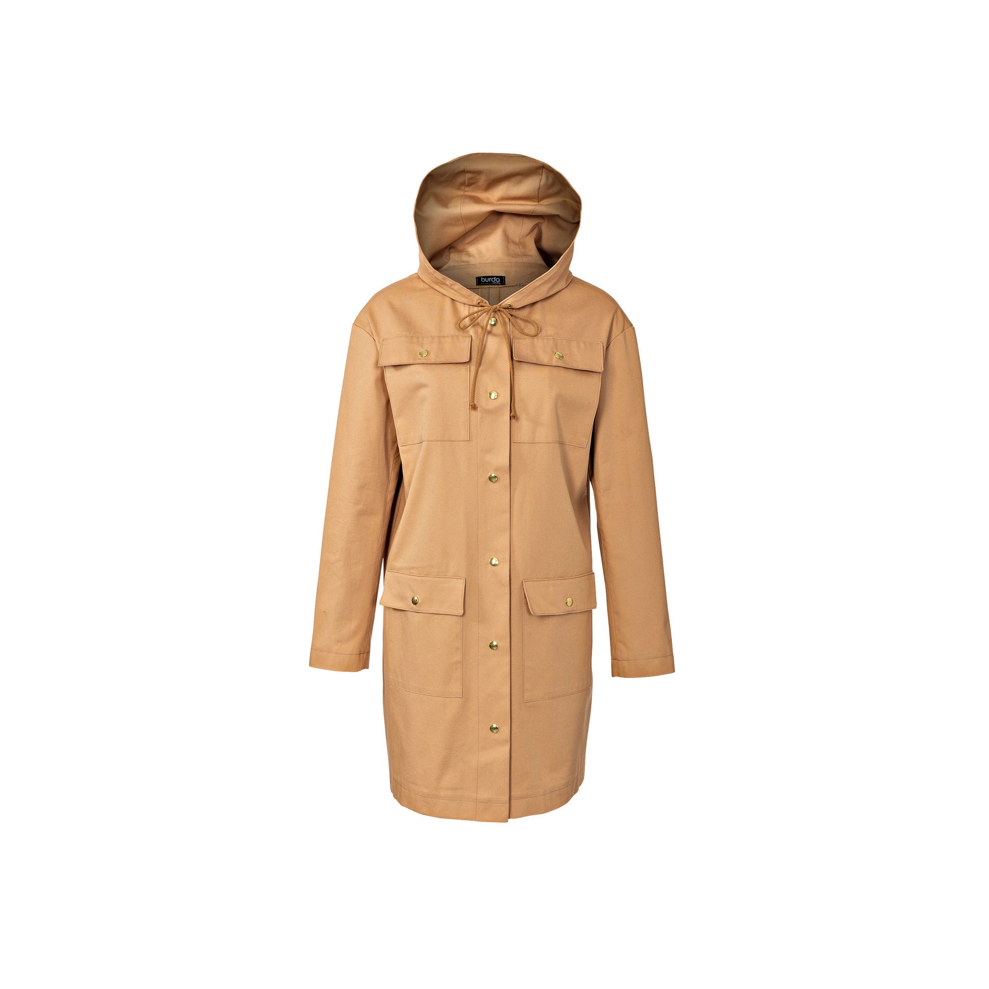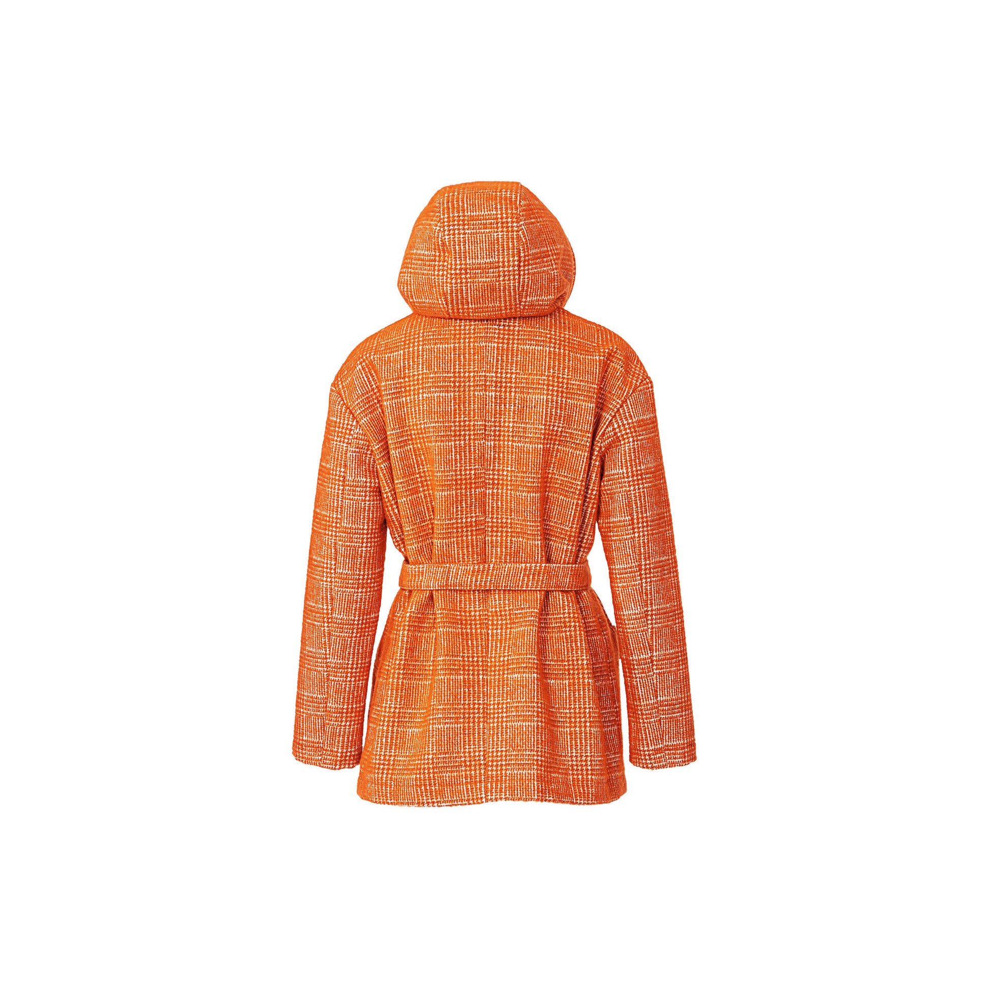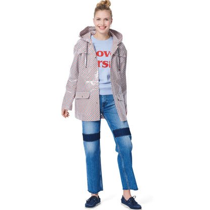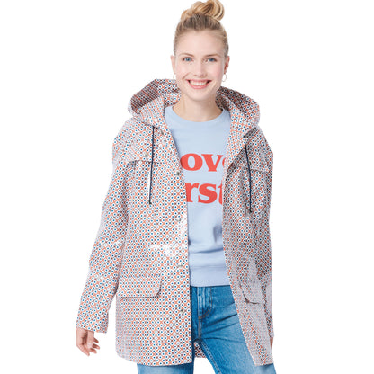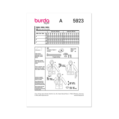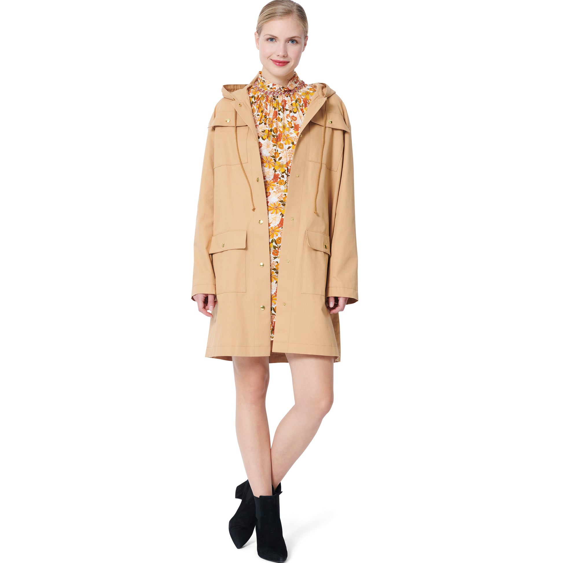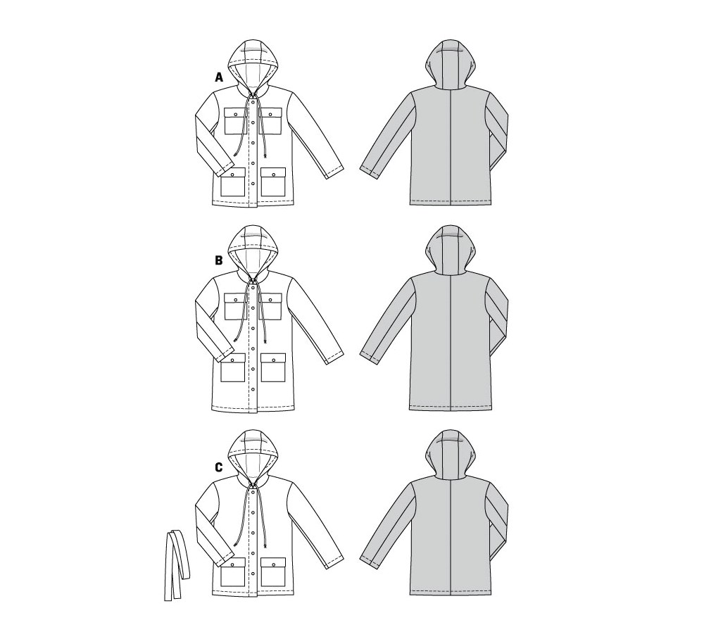 The hooded parkas with patch pockets have clean lines and are minimal in style. There is no lining so they are quick to sew in two different lengths. All are fastened with hammer-on snaps. Jacket B also features a tie belt.
