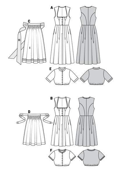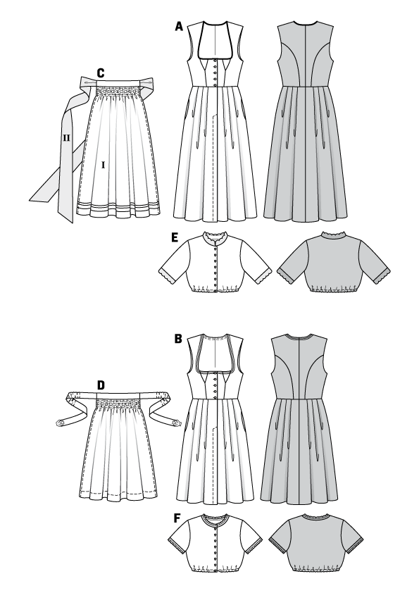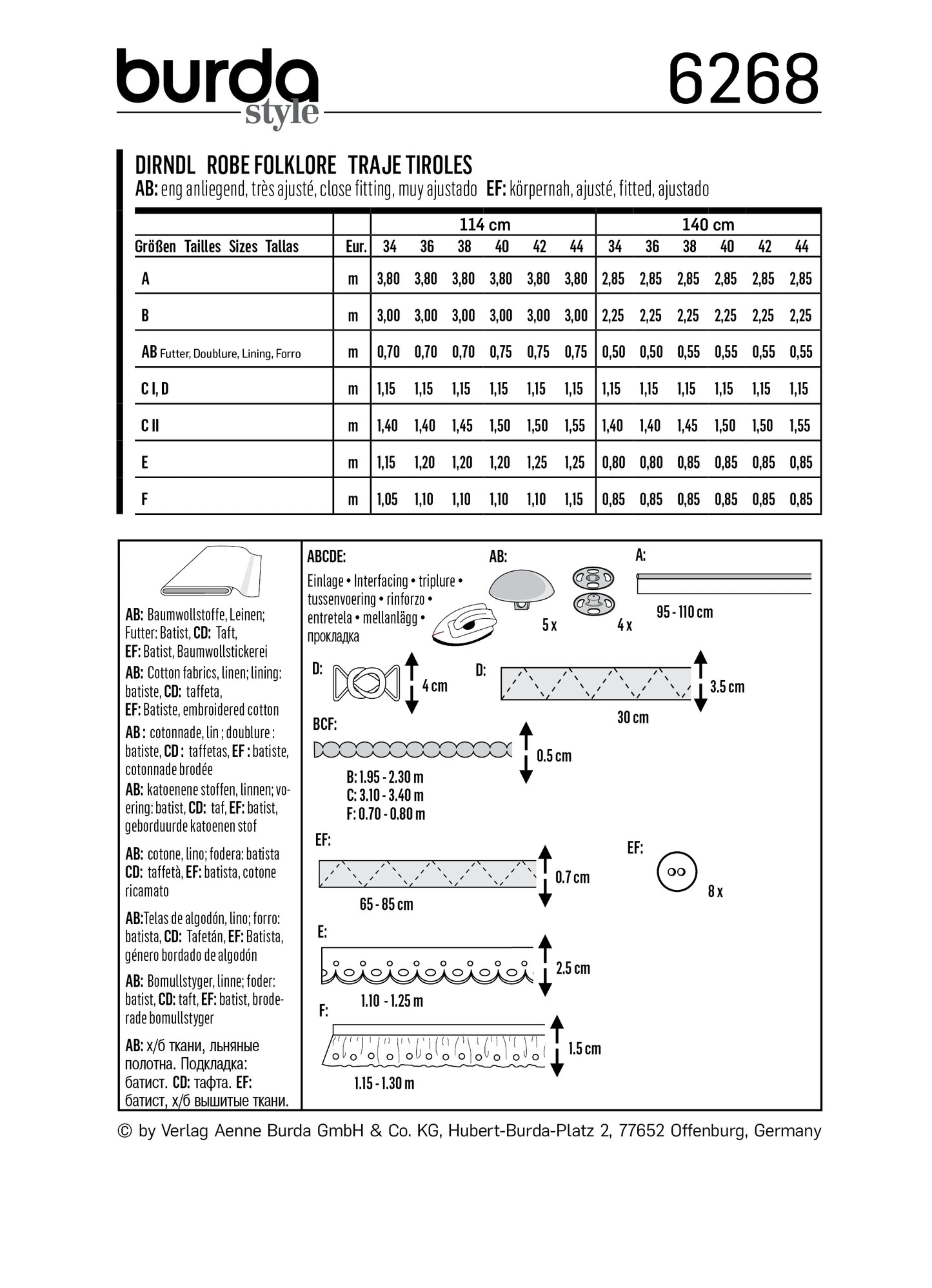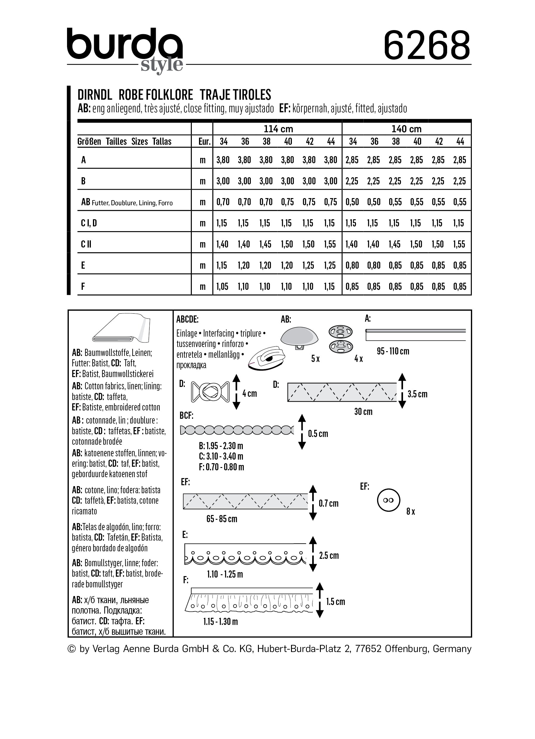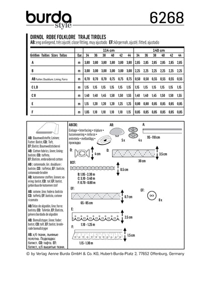Burda Pattern 6268 Misses' Jumper Dress in Dirndl-Style, Blouse and Apron