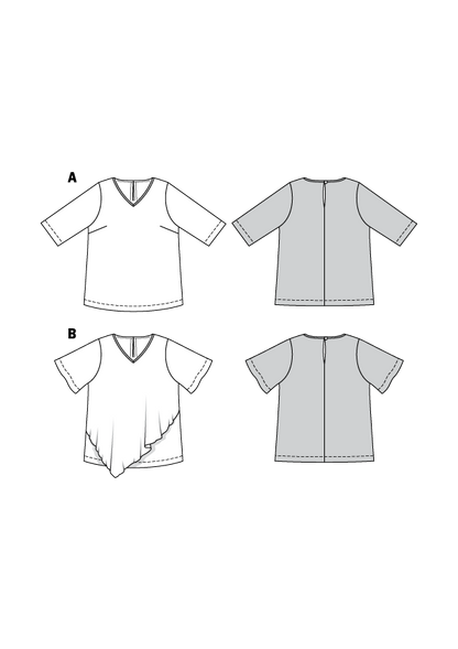 | Loose-fitting tops of woven fabric with a V-neck for everyday wear. The small back slit with a button-and-loop fastening let you slip them on easily. Looking for something extra special? Choose view B with an asymmetric over layer and bell-shaped sleeves. |