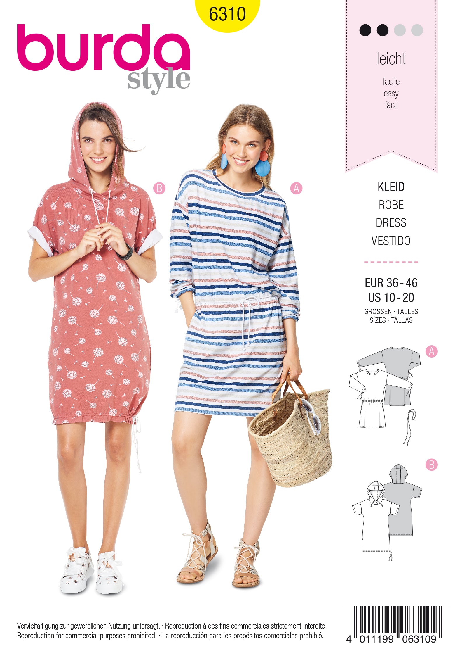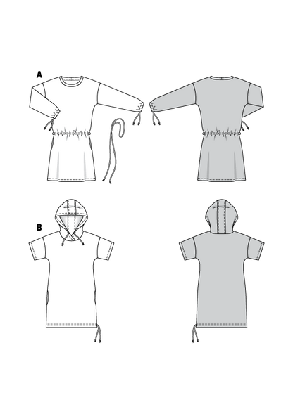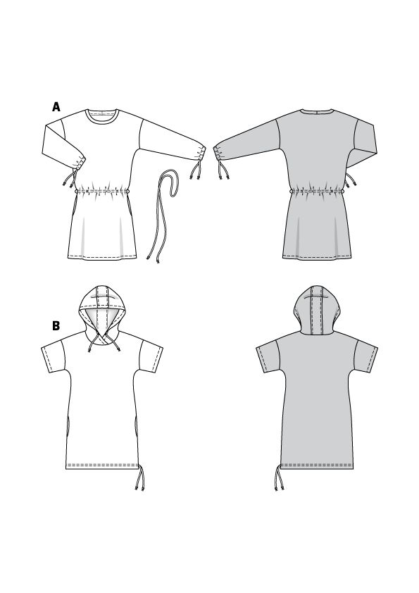 Young and super comfy dresses like these come with a feel good guarantee! The drawstring casings at the elongated waist, hood and hem are typical casual styling details together with the in-seam pockets.