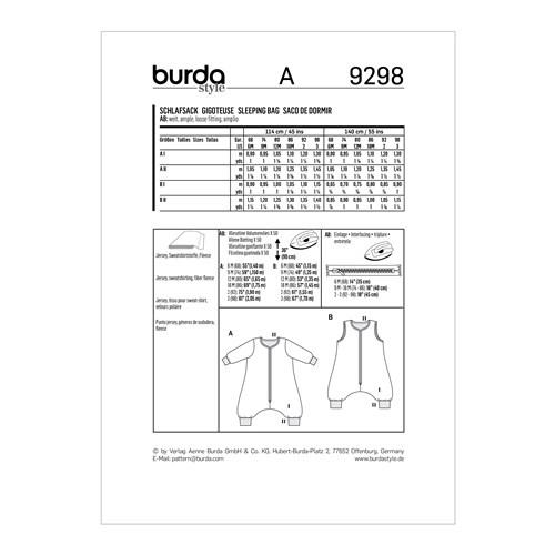 Burda Pattern X09298 Toddlers' Infants Sleeping Bag Or Jumpsuit (6M-3)