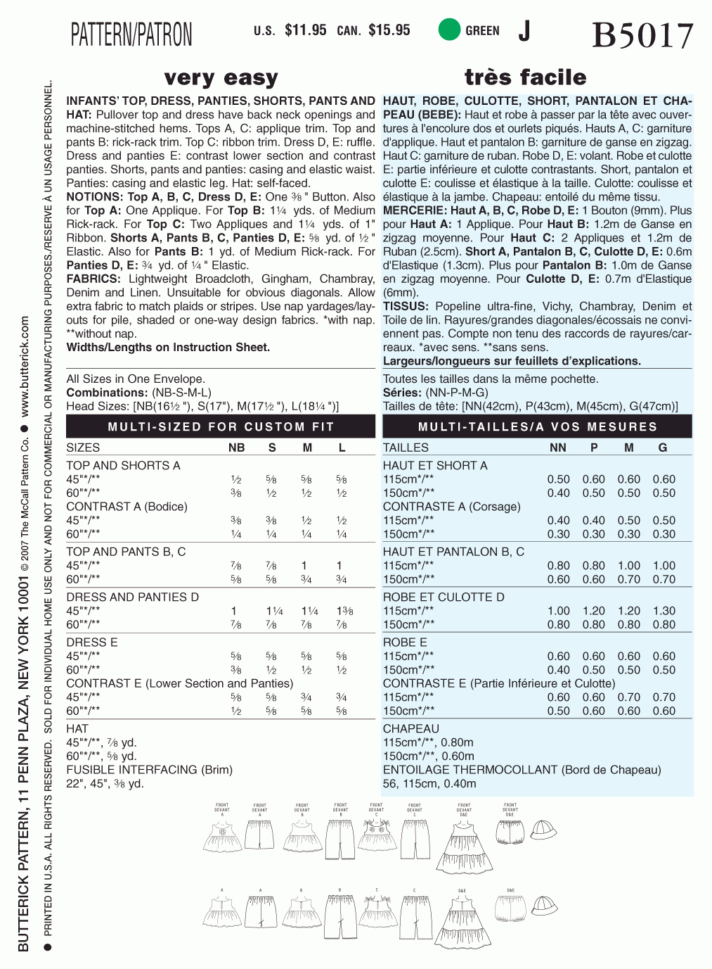 Butterick Pattern B5017 Infants' Top, Dress, Panties, Shorts, Pants and Hat