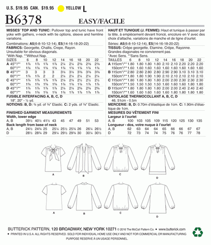 Butterick Pattern B6378 Misses' Gathered Tops and Tunics with Neck Ties