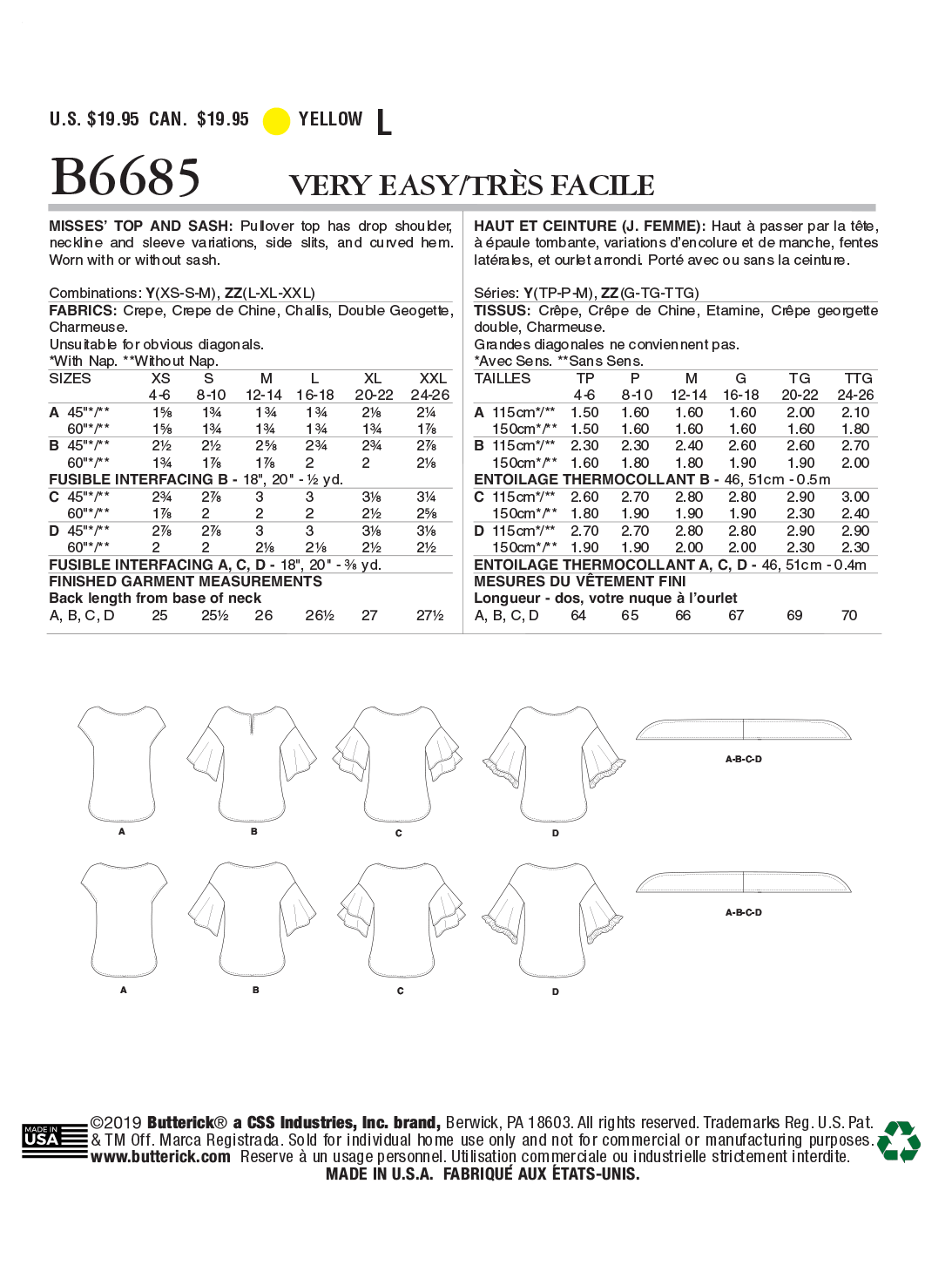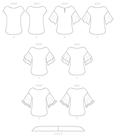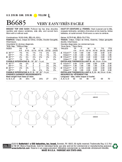 Pullover top has drop shoulder, neckline and sleeve variations, side slits and curved hem. Worn with or without sash.