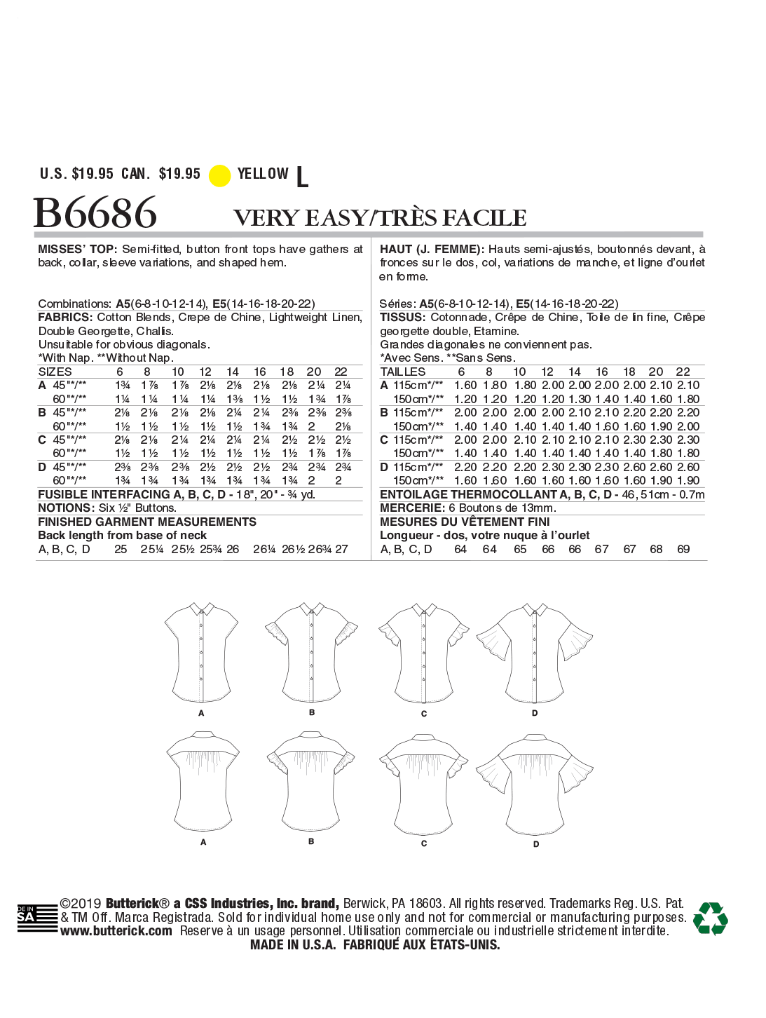 Butterick Pattern B6686 Misses' Top / Vest