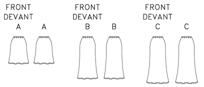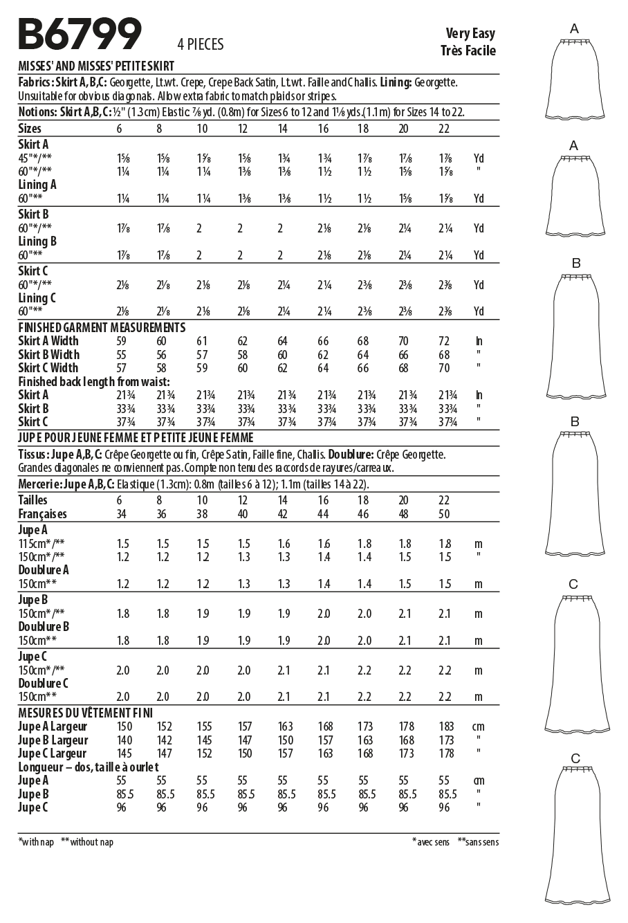 Bias, A-line, lined skirt has elastic waist & narrow hem. A: above mid-knee. B: above ankle-length. C: ankle-length. Purchased top.