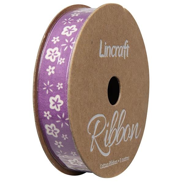 Cotton Ribbon, Flower Purple- 15mm x 3m
