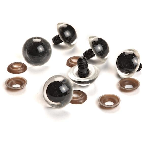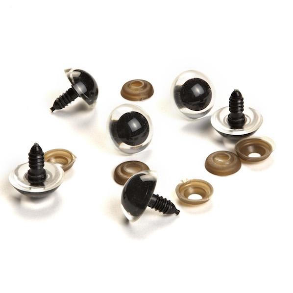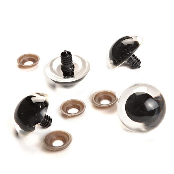 Bring your creations to life with these black and clear Plastic Eyes from Sullivans. These eyes are perfect for toy making, plush toys, teddy bears, puppets, dolls and more. Includes washers. Available sizes: 12mm(12pcs), 14mm (10pcs), 16mm (10pcs), 20mm (6pcs), 25mm (6pcs), 30mm (4pcs).