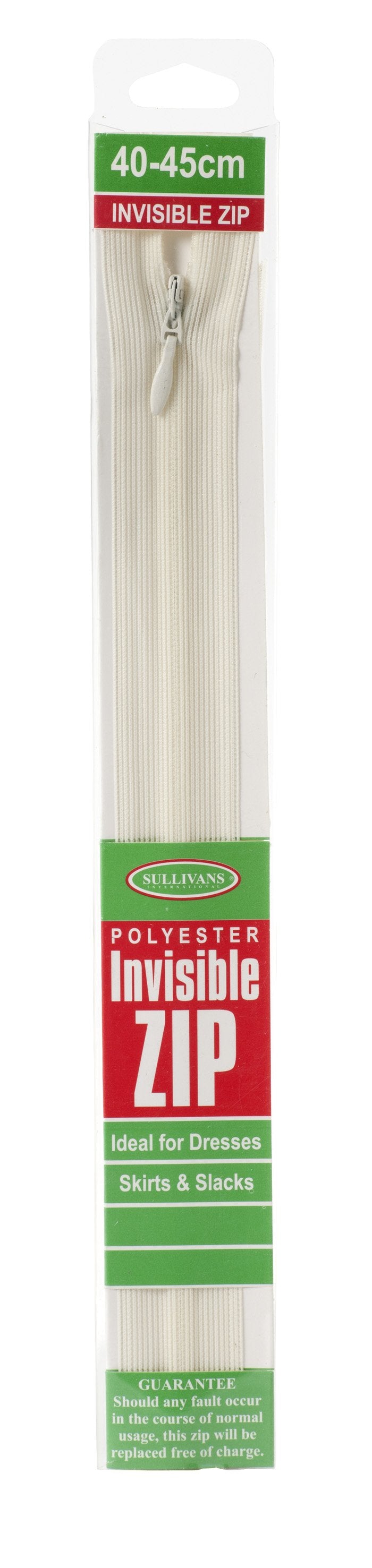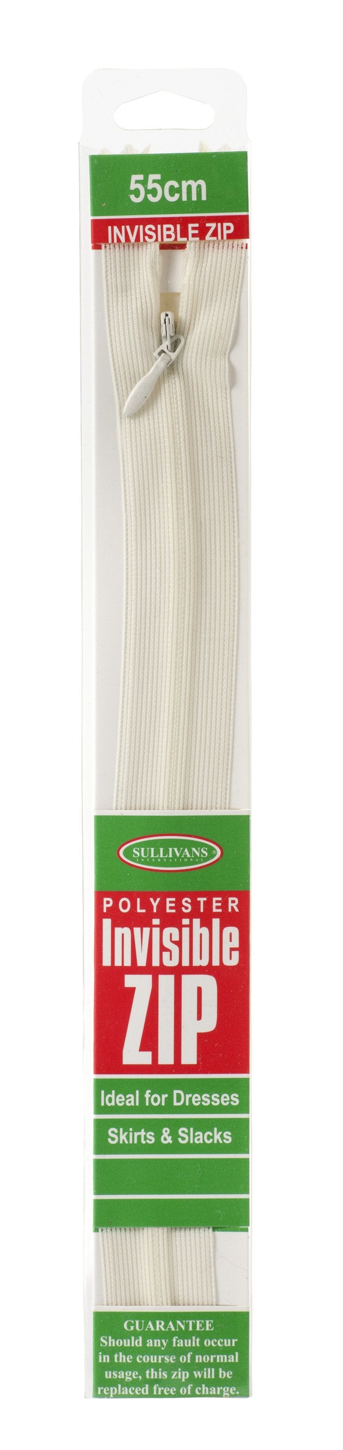 This Sullivans Invisible Zip is perfect for when you want your zip to remain hidden for a sleek and finished look. This flexible yet strong 25cm zip is ideal for special occasion items such as dresses, skirts and pants. For best results, use an invisible zipper foot when sewing into a garment. Available in cream.