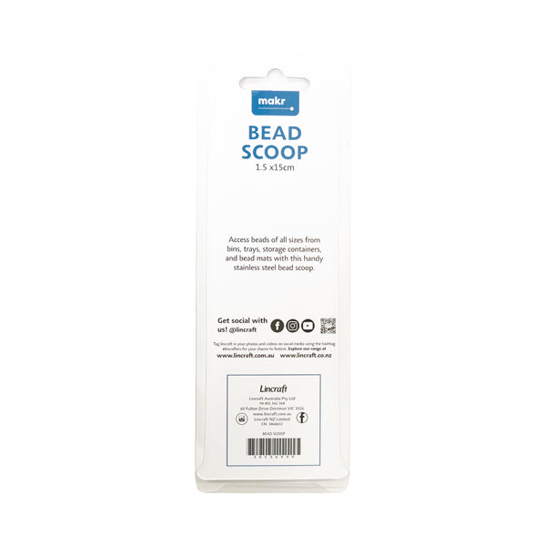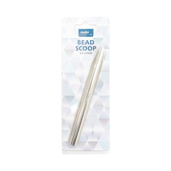 Access beads of all sizes from bins, trays, storage containers, and bead mats with this handy stainless steel bead scoop.