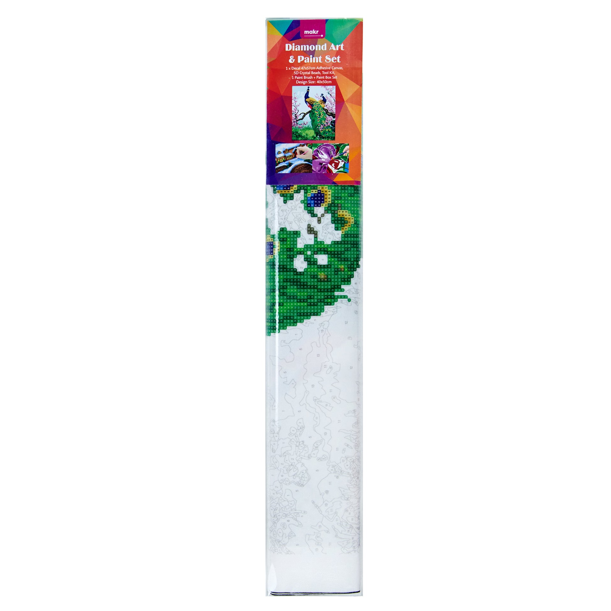 •Kit includes: 1xDecal 47x57cm Adhesive canvas, 5D crystal Beads, Tool Kit, 1 Paint brush plus Paint box set design, size: 40x50cm