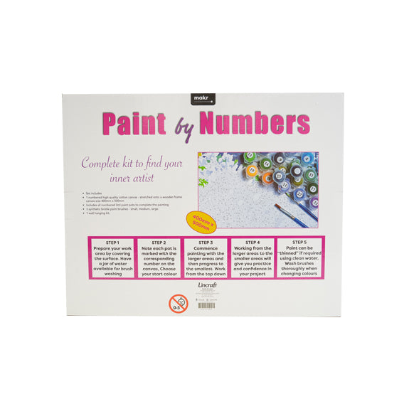 - Stretched Canvas Panel On 20mm Deep Wood Frame, Paint Tubs, 3 Brushes, 2 Hook & Screw Wall Hangers, Pre Printed Colour Detail Information Sheet