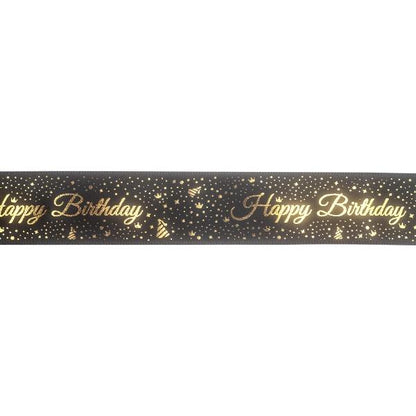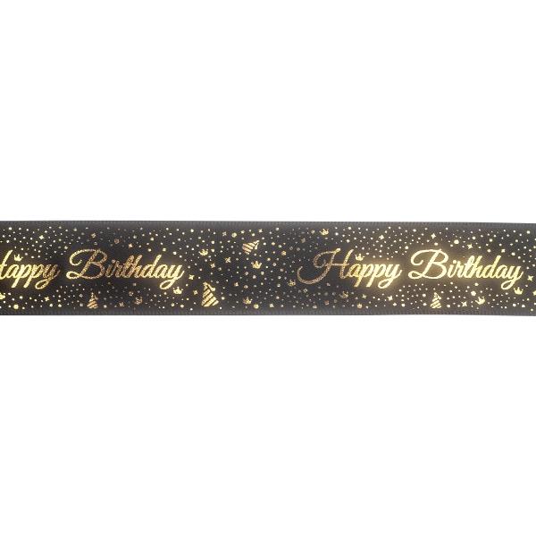 - Colour/Design: Gold Happy Birthday Black Satin.