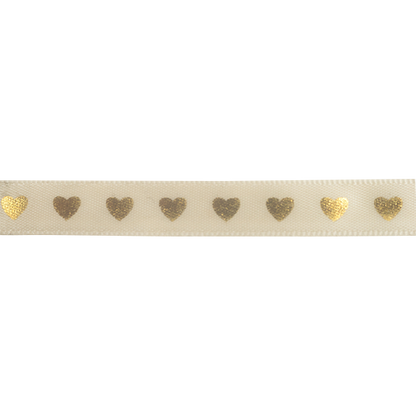 Makr Ribbon, Gold Hearts Gold Satin- 9mmx9.1m