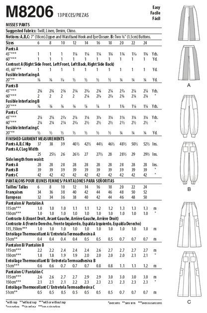 Misses' carpenter, cargo or color blocked pants. View B: cuff.
