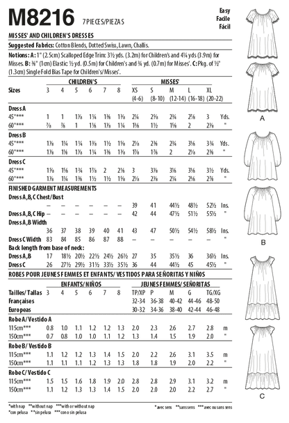 McCall's Pattern M8216 Misses' & Children's Dresses