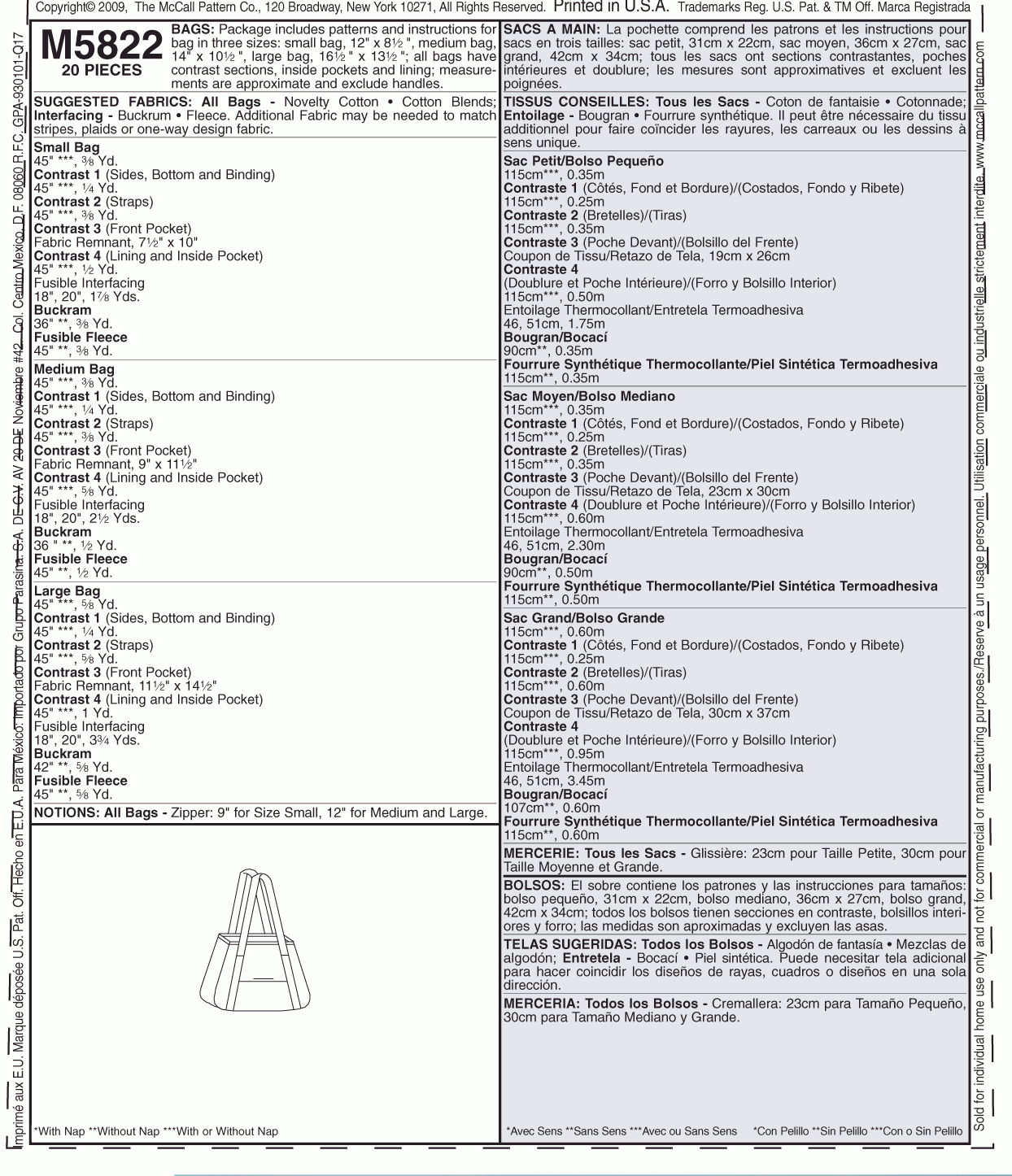 McCall's Pattern M5822 Tote bag In 3 Sizes