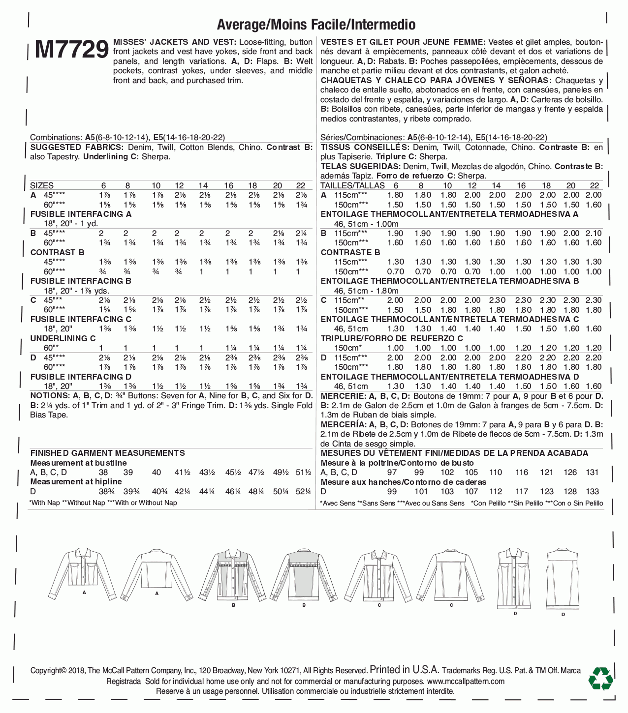 McCall's Pattern M7729 Misses' Jackets and Vest