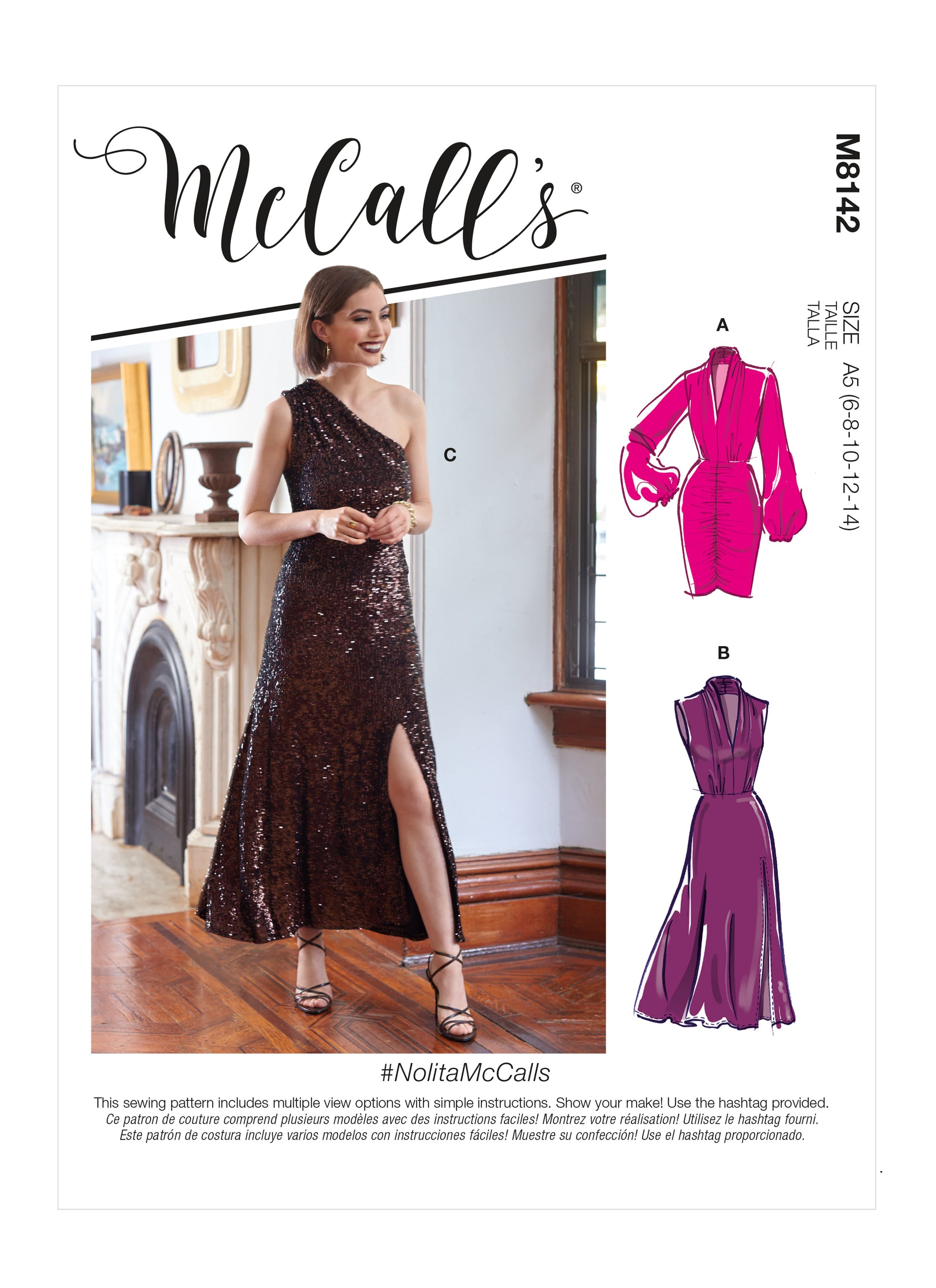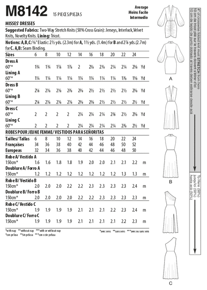 Knit pull-on dresses with two bodices & skirt variations plus sleeve.