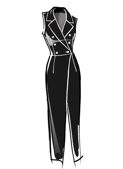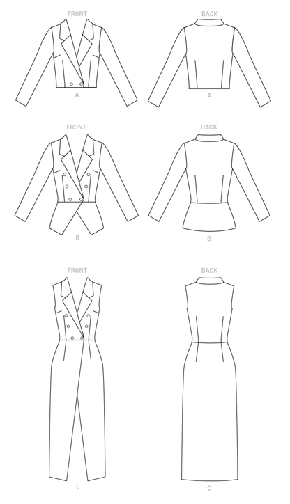 Double breasted, lined vest & jacket with notch collar in multiple lengths.