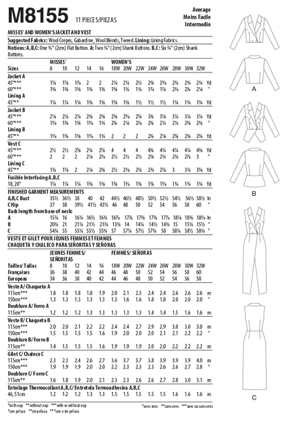 McCall's Pattern M8155 Misses' & Women's Jacket & Vest