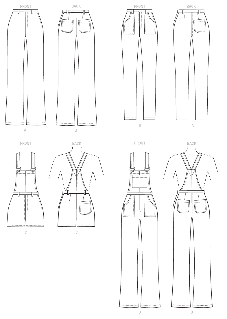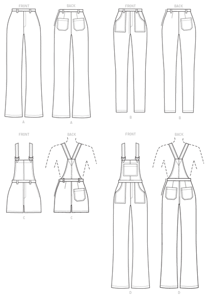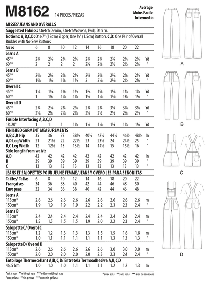 McCall's Pattern M8162 Misses' Flared Jeans, Overalls, Skinny Jeans & Shortalls