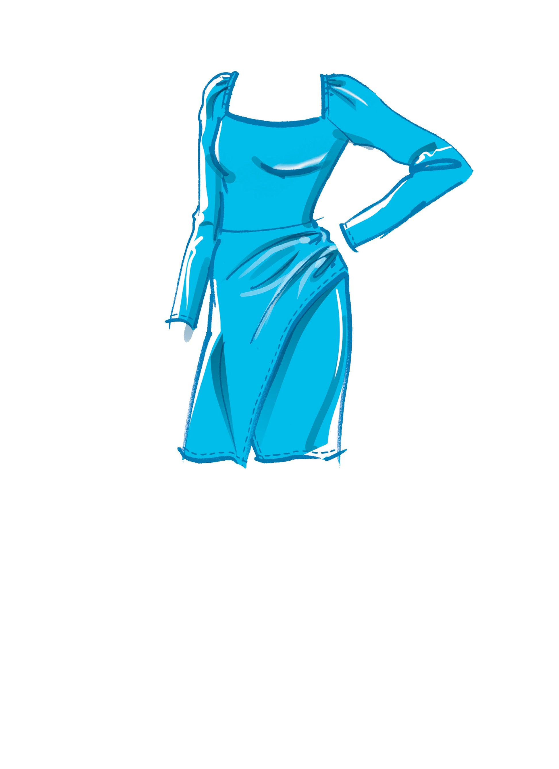 Misses' & women's knit pullover dress with faux ruched wrap sarong skirt. Elastic at A & C sleeves. Spaghetti straps for view B.