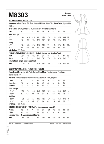 McCall's Pattern M8303 Dress & Sleeved Cape