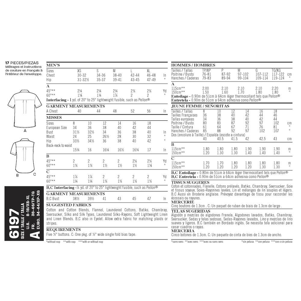 Newlook Pattern 6197 Misses' and Men's Shirts