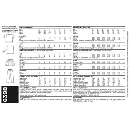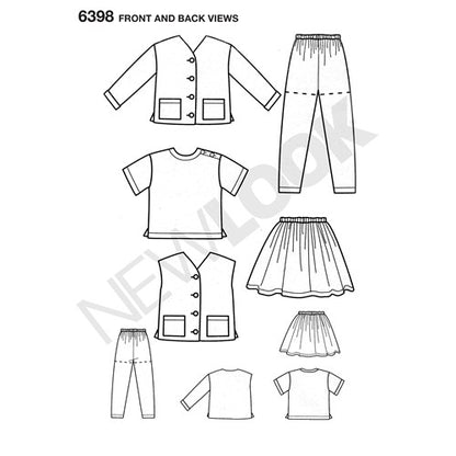 - Unisex toddler shirt, pants, vest, shorts, and skirt and reversible jacket and vest.