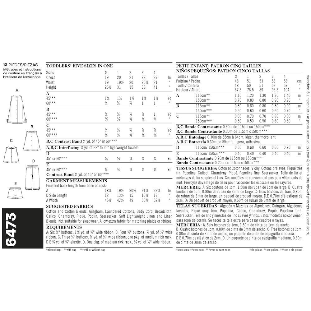Newlook Pattern 6473 Toddler Separates