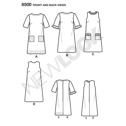 Newlook Pattern 6500 Misses Dress with Neckline, Sleeve, and Pocket Variations