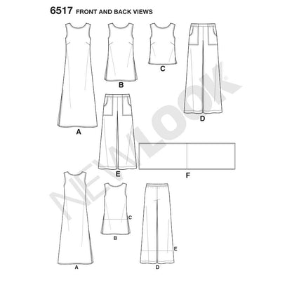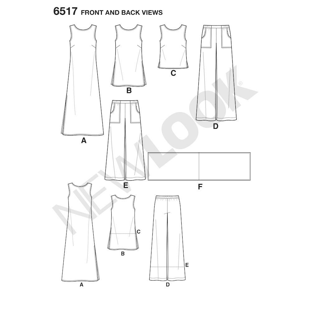 Newlook Pattern 6517 Women’s Dress, Tunic, Top, Pants, and Scarf