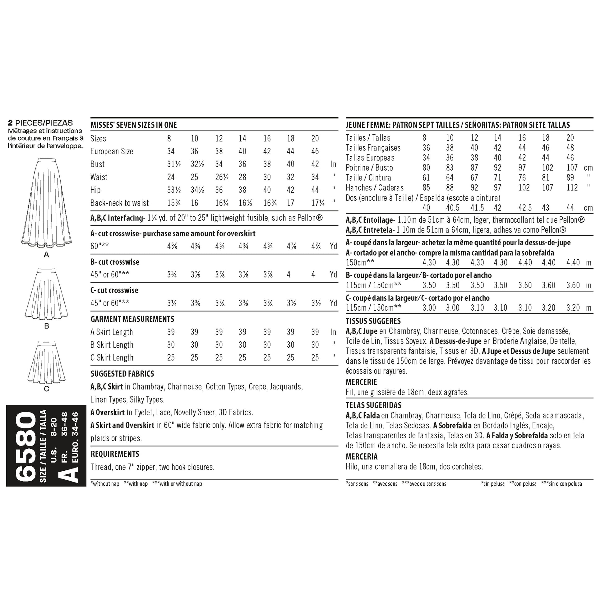 Easy to sew misses' skirt in three lengths with optional overskirt view. New Look sewing pattern.