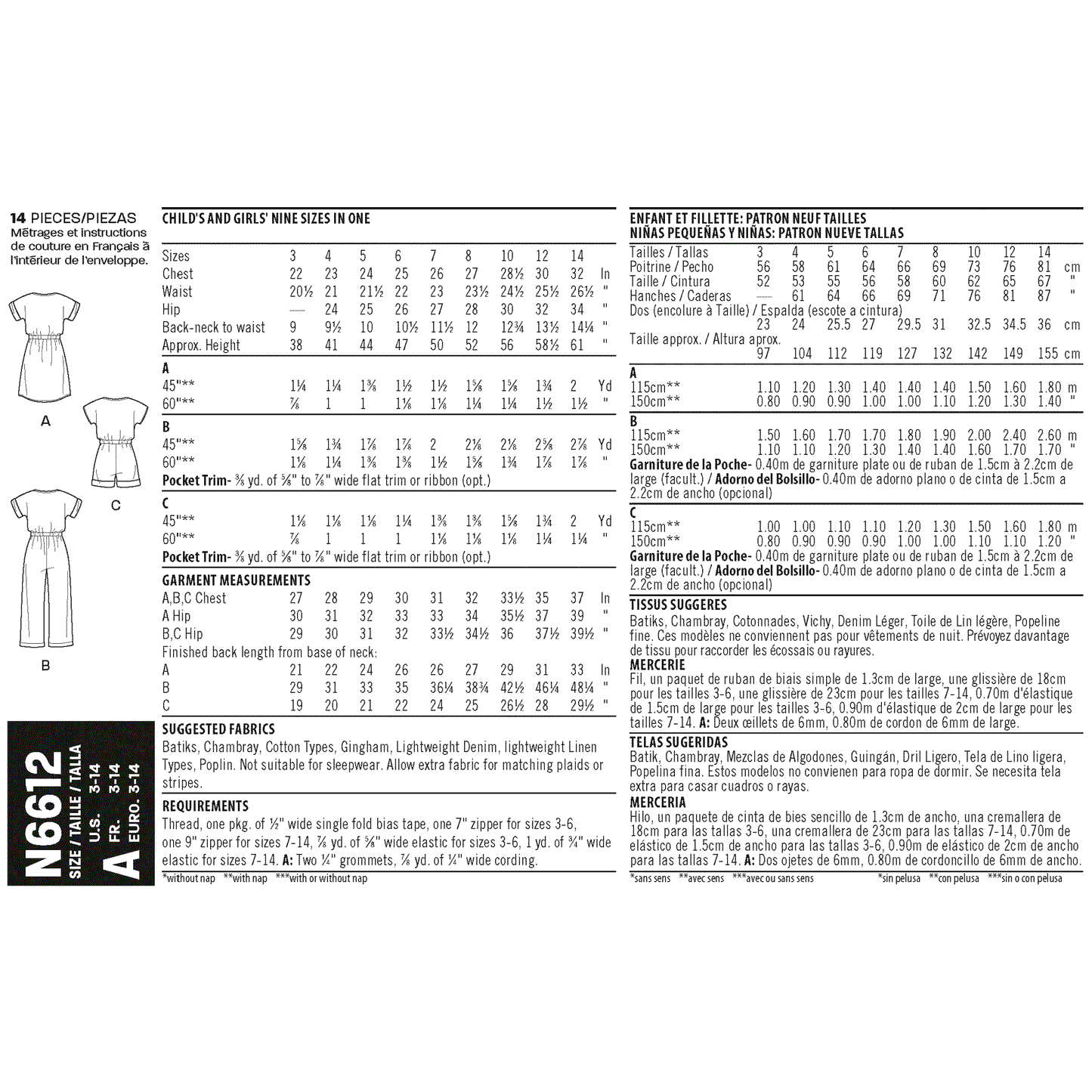 Newlook Pattern N6612 Children's, Girls' Jumpsuit, Romper and Dress