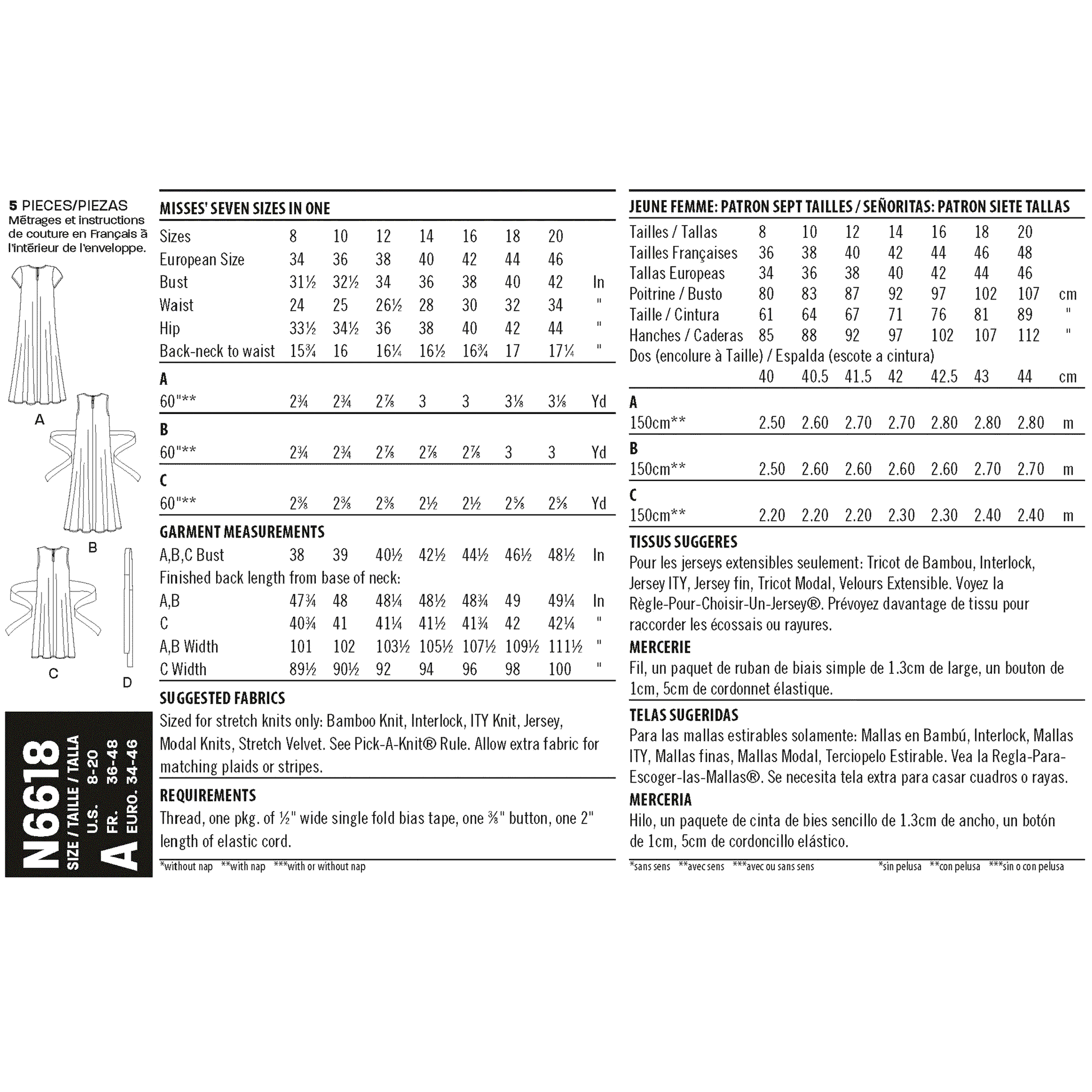 Misses' slim on dresses, designed for stretch knit fabrics. In two lengths, with back neck fastening and waist ties.