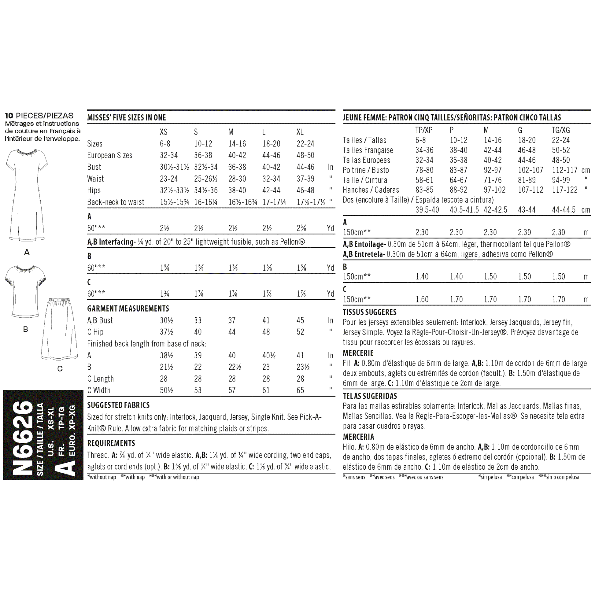 Misses' pull-on dress or top with gathered neckline. Skirt is elasticated at waist. Designed for stretch knits only.