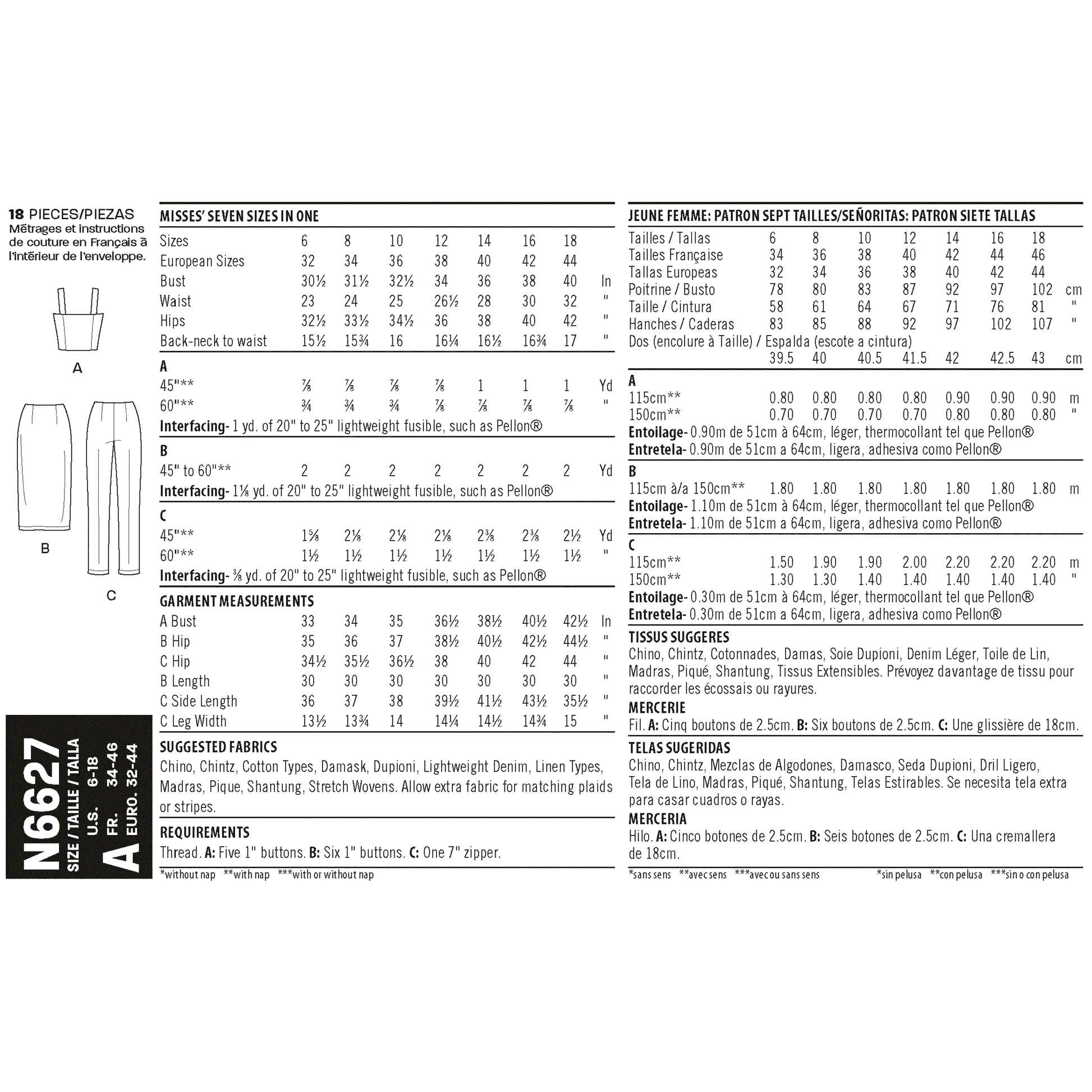 Newlook Pattern N6627 Misses' Top, Skirt, And Pants