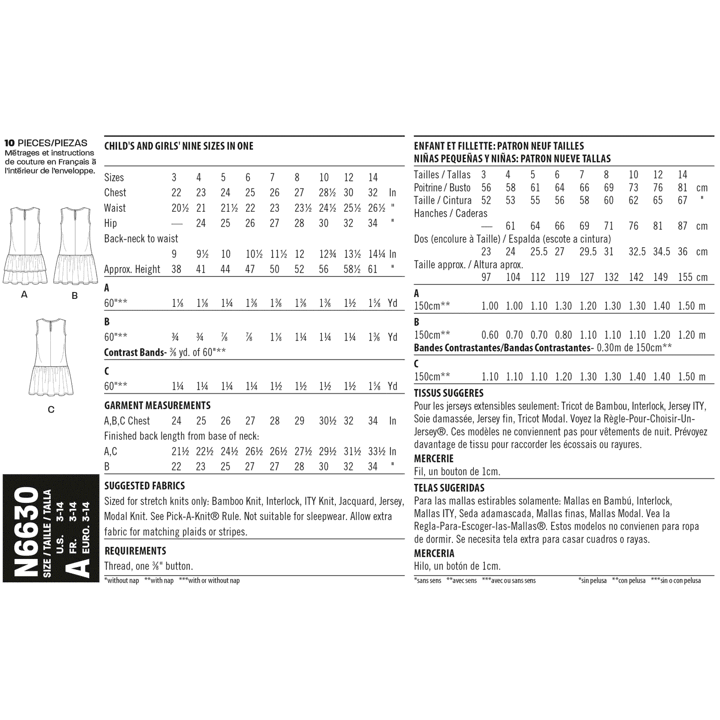 Newlook Pattern N6630 Children's And Girls' Dresses