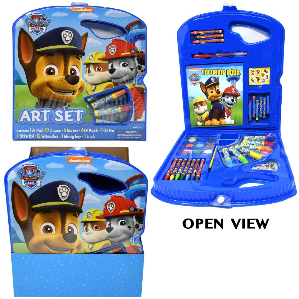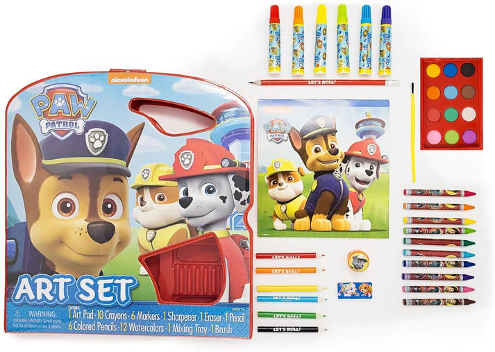 Contains 1 Art Pad, 10 Crayons, 6 Markers, 1 Sharpener, 1 Eraser, 1 Pencil, 6 Colored Pencils, 12 Watercolors, 1 Mixing Tray, 1 Brush